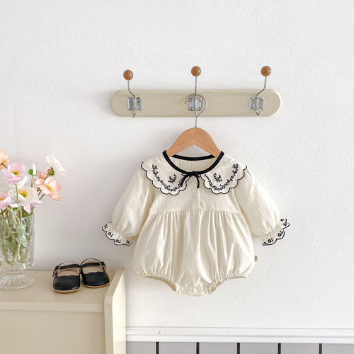 Autumn Arrival Baby Girls Long Sleeves Flowers Embroidered Pattern bodysuit